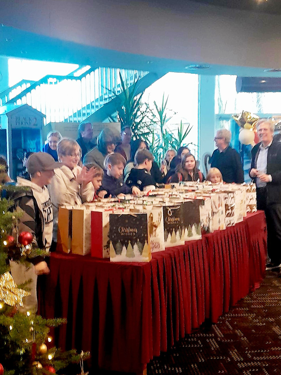 Im Anschluss konnten wir im Foyer eine "kleine Bescherung" -natürlich mit Weihnachtsbaum- organisieren und unsere gut gepackten Nikolaustüten bei netten Gesprächen überreichen. Die Kinder und Betreuer haben sich ganz herzlich bei unserem Club für die Ausrichtung bedankt.