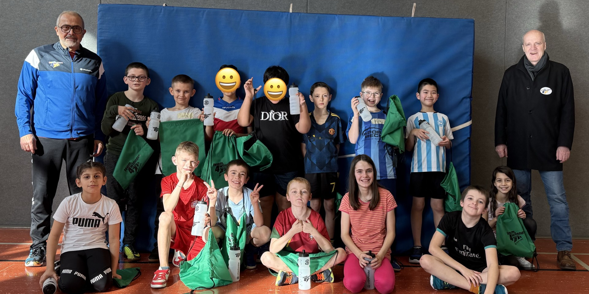 Dieser Trainingseifer sollte belohnt werden und so durfte Stephan Lampen von Team4Winners jedem Kind eine Trinkflasche und einen Sportbeutel übergeben.